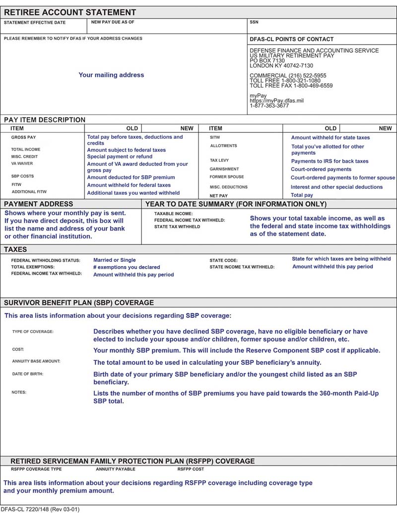 A monthly electronic Retiree Account Statement RAS is available to all military retirees currently receiving retirement payments. It is a fast and secure way to access your tax statement and manage your retirement or annuity account day to day. Familiarize yourself with the password requirements.